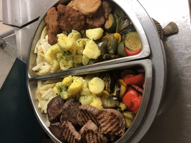 Neben einer Vielzahl an Fleisch- und Fischgerichten finden Sie auch vegetarische und vegane Speisen in unserem täglich wechselnden Menüangebot.